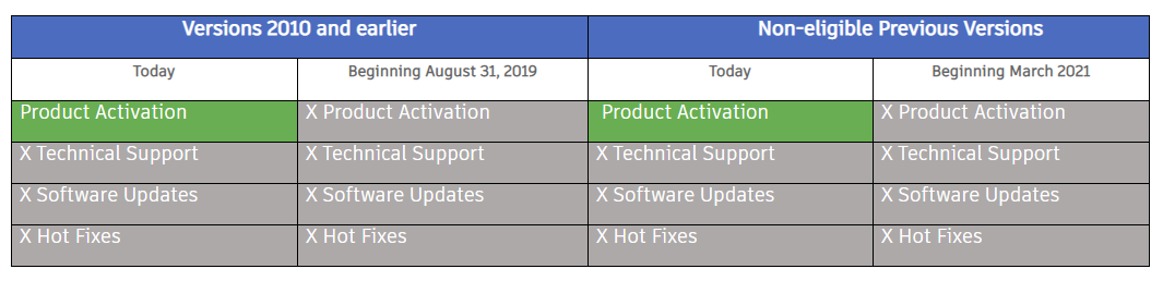 Autodeski lepingulised kliendid saavad endiselt kasutada ka ilma toeta varasemaid versioone. Samuti ka lepingu lõpetanud püsilitsentside omanikud võivad kasutada versiooni, mis jäi neile lepingu lõppemisel. Sellisel juhul tuleb küll arvestada, et tarkvaral puuduvad tehnilised uuendused ja veaparandused, mis võib kujutada endast turvariski. Samuti tuleb arvestada, et alates septembrist 2019 ei saa vanemaid kui 2010 versioone enam vajadusel uuesti aktiveerida (näiteks uude arvutisse paigaldades). Ka Microsoft on teatanud, et lõpetab Windows 7 toe 14. jaanuaril 2020.