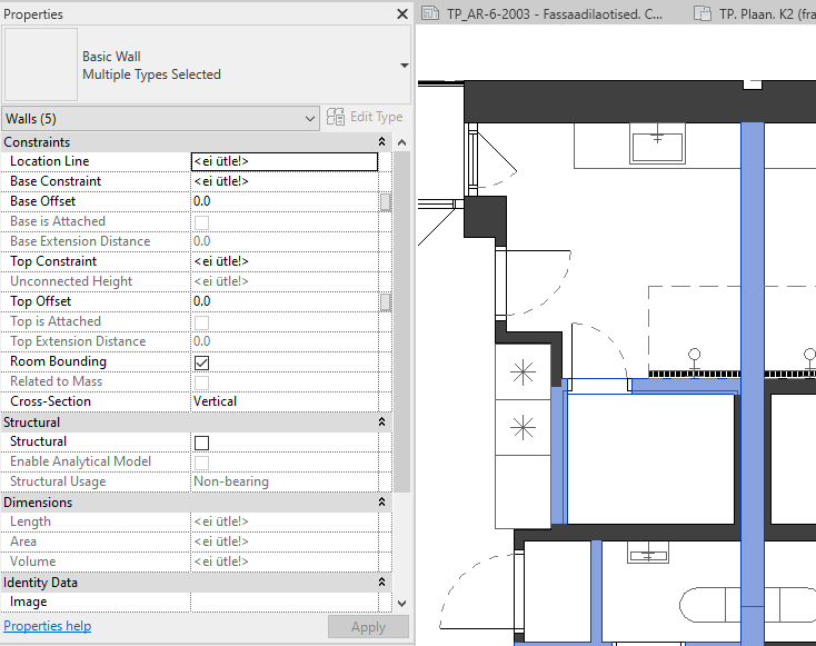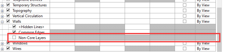 Plaanil vaid seina põhikihtide kuvamine (Show Wall Core Only in Plan Views)