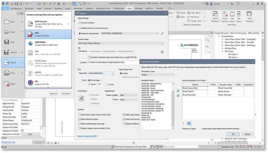 See on üks kuldaväärt täiendus. Enam ei pea endale kaheldava väärtusega ning nuhkvara täis PDF printereid installeerima, sest Revit teeb selle töö ise ära. Mitte küll nuhkimise, aga printimise töö loomulikult. Ja teeb ta seda vägagi hästi. Olemas on kõik vajalikud sätted – kuhu salvestada, millises formaadis ning isegi faili nimetamise loogika peale on mõeldud. Siin ei oska esimese hooga kohe millegi üle isegi viriseda mitte, sedavõrd positiivse mulje jätab see täiendus. Tundub, et Autodesk on palganud Revitit arendama lõpuks kellegi, kes on oma elus tõesti täiesti ise mõne joonise välja printinud. Mina tänan!