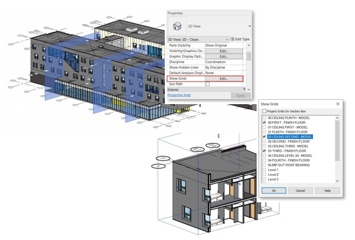 Mõned versioonid tagasi hakkasime nägema 3D kuvades leveleid. Nüüd on järg telgede käes. Nende vertikaalsete tasandite manamine 3D-s ei kuulu Revitis enam esoteerika valdkonda. Kõik on nüüd ilusasti näha. Isegi katsuda lubatakse. Pole paha! Minu kristallkuul jääb nüüd lauasahtlisse tolmu koguma.