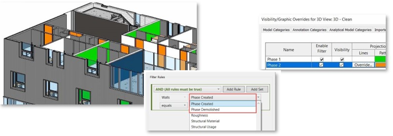 Kuvafiltrites on võimalik ära kasutada ehitusetappide parameetreid “Phase Created” ja “Phase Demolished”. Mis tähendab, et iga elemendi välimuse saad sõltuvalt ehitusetapist timmida täpselt selliseks nagu soovid. Mis tähendab, et Phase Filter kui niisugune on kaotanud oma mõtte. Vähemalt esmapilgul tundub nii, aga eemaldatud seda veel Revitist pole. Äkki kellelgi läheb vaja.