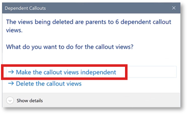 Detailikuva säilitamine põhikuva kustutamisel (Preserve Callouts when Deleting Parent Views)