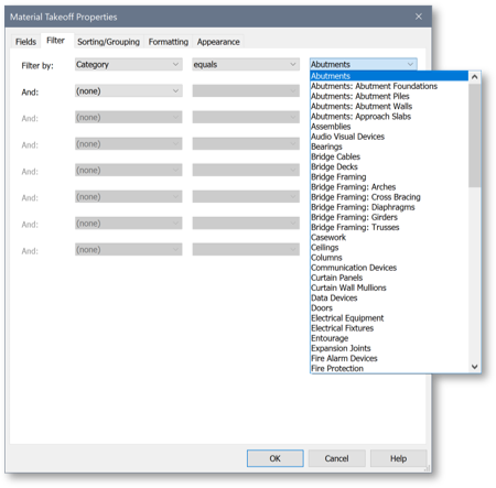 Materjalide spetsifikatsioon (Material Takeoff Enhancements)