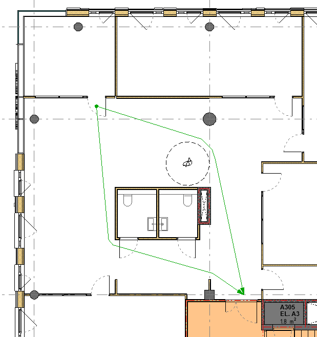 Ustele on võimalik määrata uus omadus – One Way Indicator, mis tähendab, et uksed on võimalik muuta läbitavaks vaid ühes suunas. Seega, kui evakuatsioon toimub vastassuunas, ei arvesta Revit neid teekonna arvutamisel ning suunab evakuatsiooni läbi teiste uste.